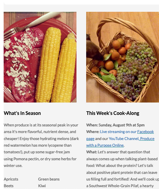 | Need a little mid-summer inspiration? Encouragement and usable knowledge? Come and cook with us (in your own kitchen) in real time. Like a sing-along but for food! We’ll give you the recipe and a grocery list and meet you back here next Sunday. See the full newsletter here. |